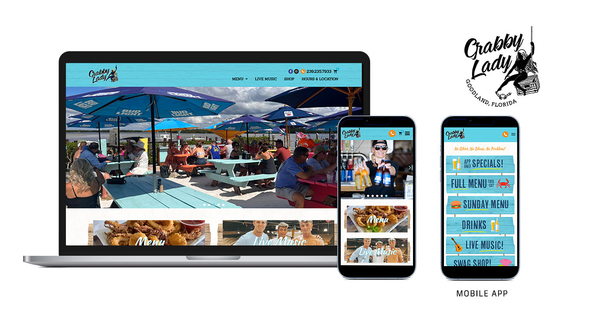 As Crabby Lady changed ownership, Harmony Marketing developed both a new website and mobile app that were easier to maintain and better represented the fun atmosphere of this local restaurant. The website and app feature live music event calendars, online menus, and an e-commerce swag shop!